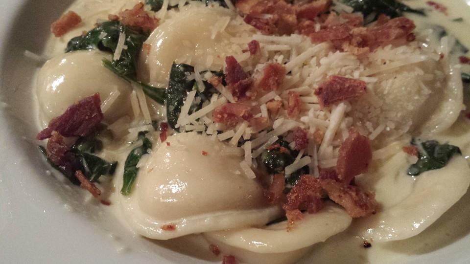 CheeseRavioliSpinachBaconAI Cheese Ravioli with Spinach, Bacon and Parmesan in a Garlicky Cream Sauce (Photo Credit: Adroit Ideals)