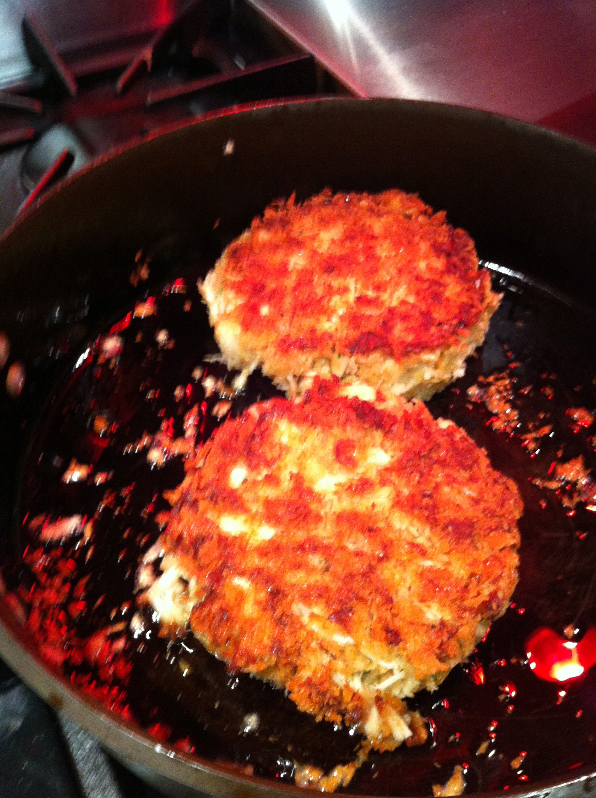 Crab Cakes saute in the pan (Photo Credit: Adroit Ideals)