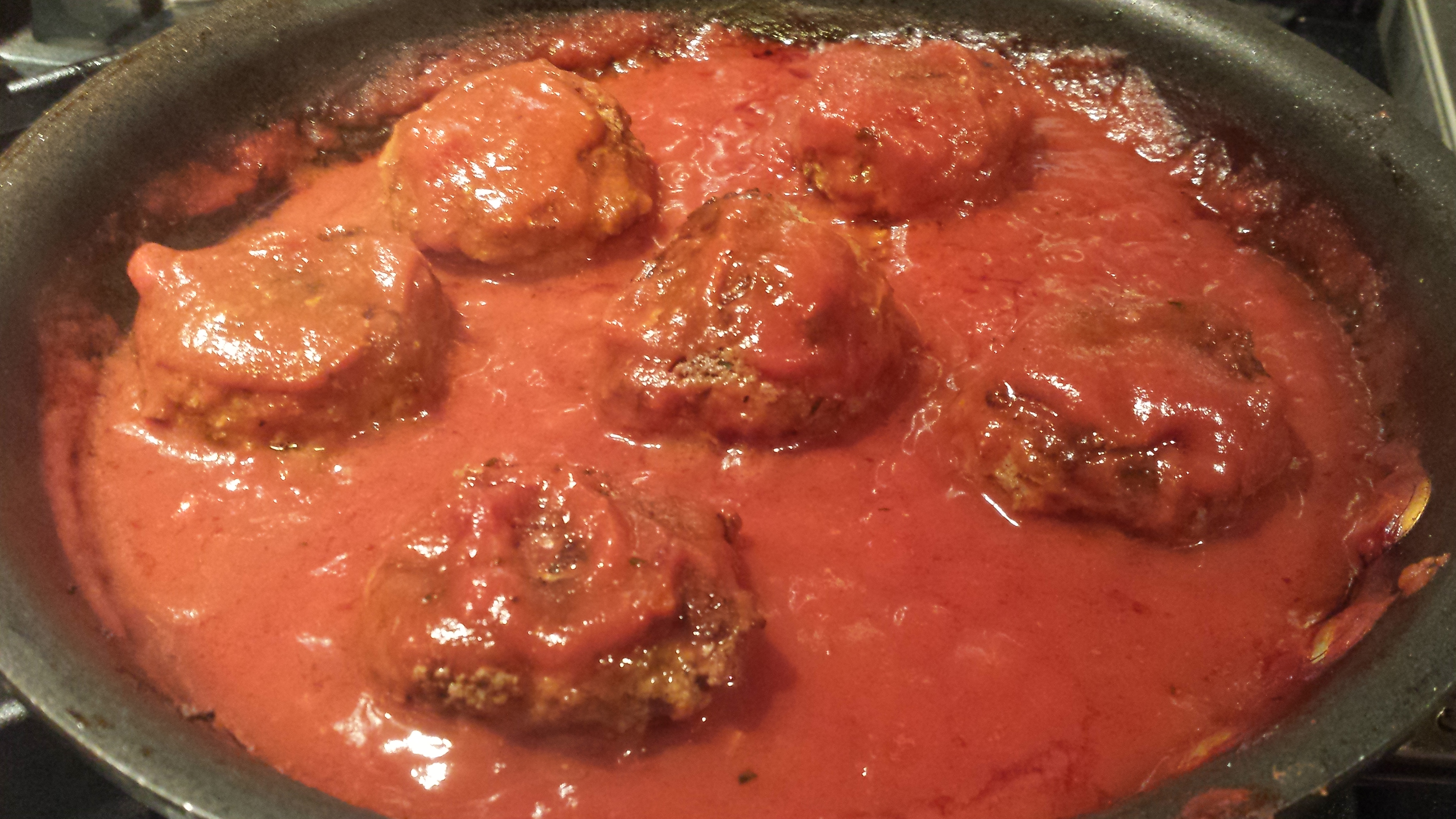 MeatballsSauceForMeatballSandwichAI Meatballs keep warm in the tomato red bell pepper sauce (Photo Credit: Adroit Ideals)