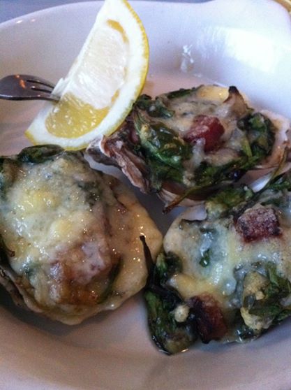 NESKBakedOystrsAI Baked Oysters with Spinach, Ham and Gooey Cheese at NorthEast Seafood Kitchen (Photo Credit: Adroit Ideals)