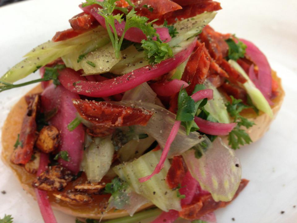 NESKButternutCeleryChorizoAI An autumn butternut squash, celery, and chorizo salad at NorthEast Seafood Kitchen (Photo Credit: Adroit Ideals)