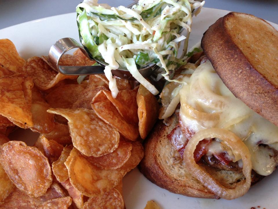 NESKSmokyPattyMeltAI The Smoky Patty Melt at NorthEast Seafood Kitchen. Served with coleslaw and house made potato chips (Photo Credit: Adroit Ideals)