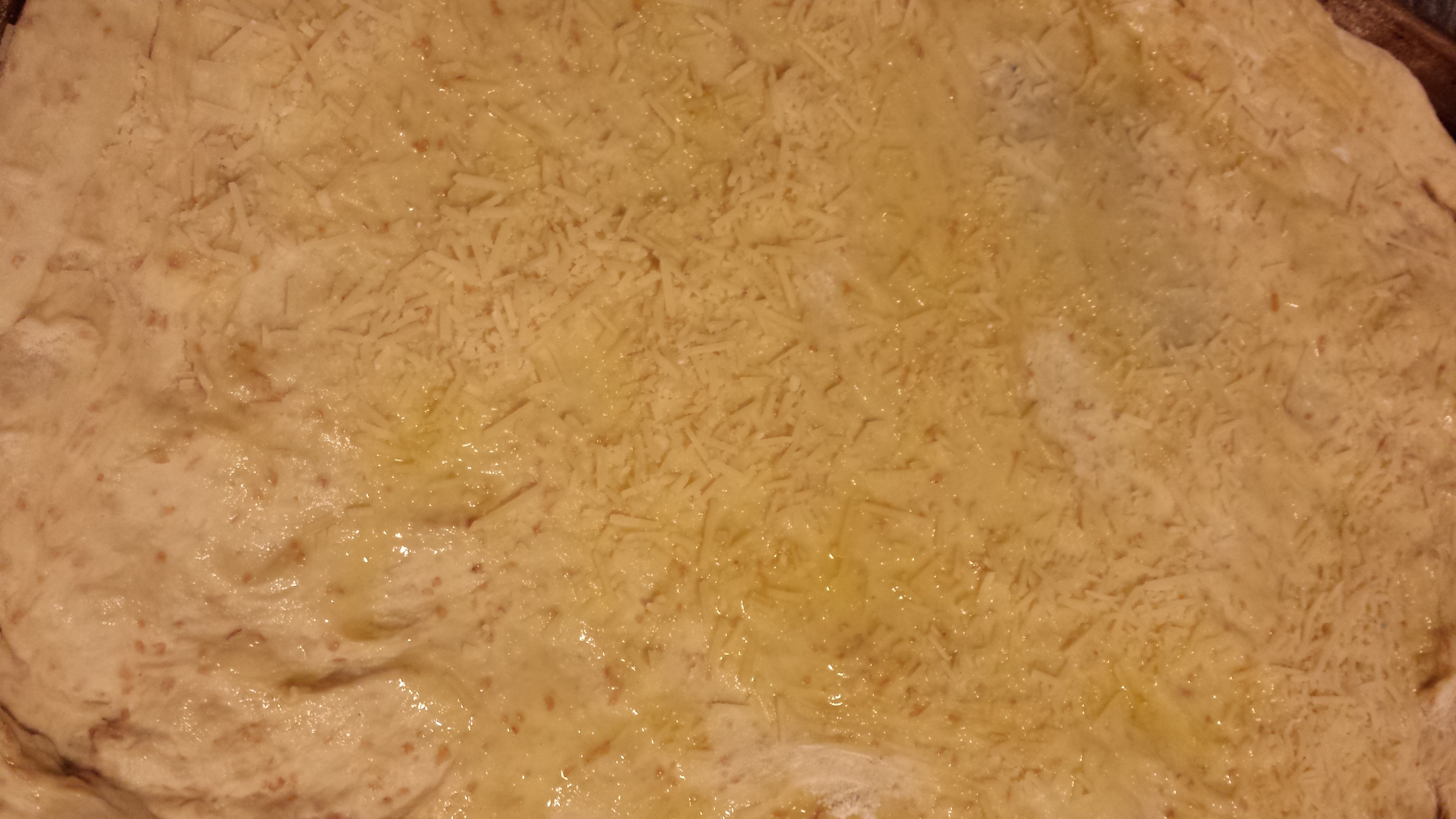 OilPizzaDoughAI Sprinkle some olive oil on the pizza dough and add some shredded Parmesan (Photo Credit: Adroit Ideals)