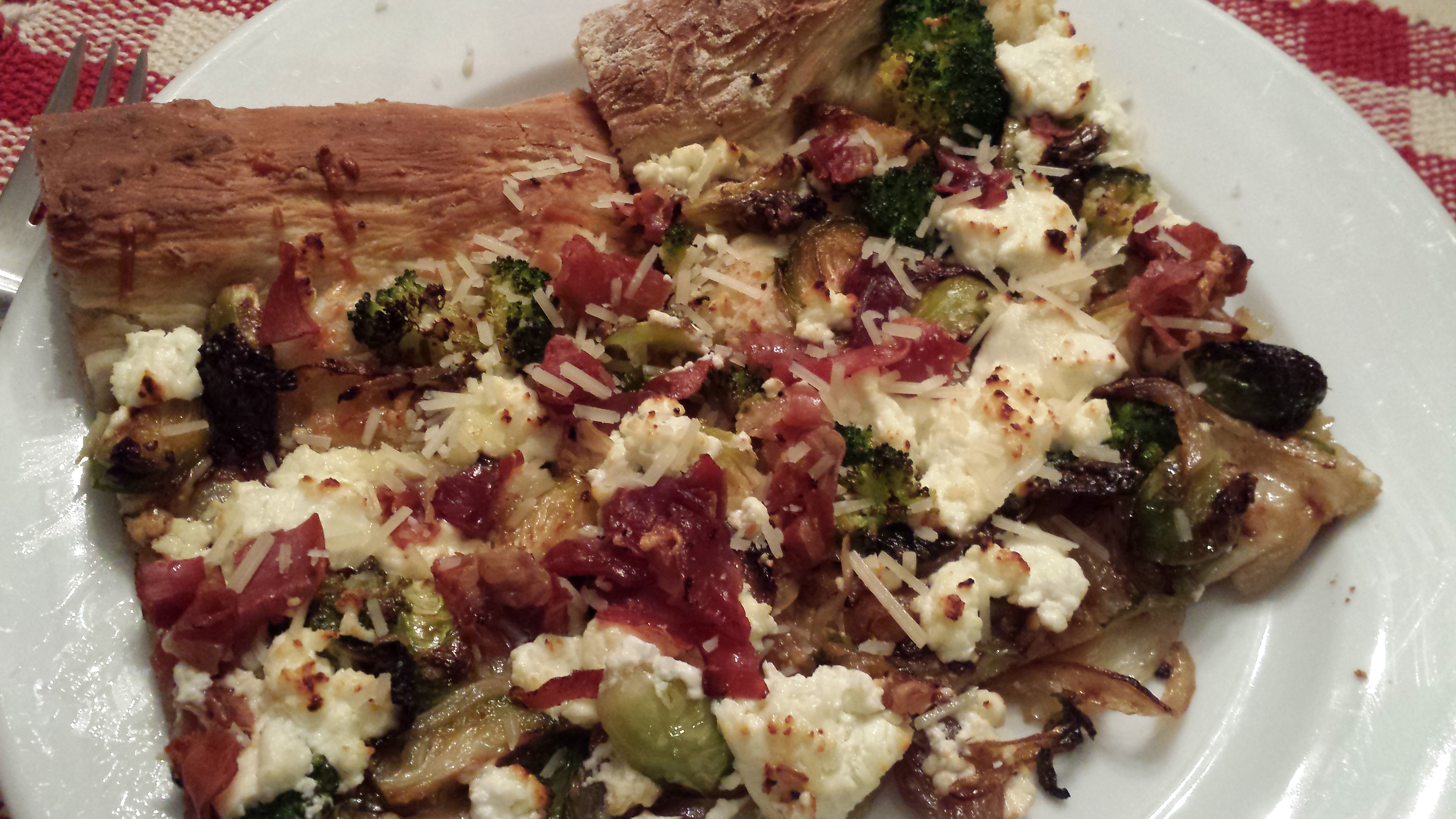 PBBPizzaSlices10AI Colorful Pizza with Proscuitto, Brussels Sprouts, Broccoli, and Goat Cheese (Photo Credit: Adroit Ideals)