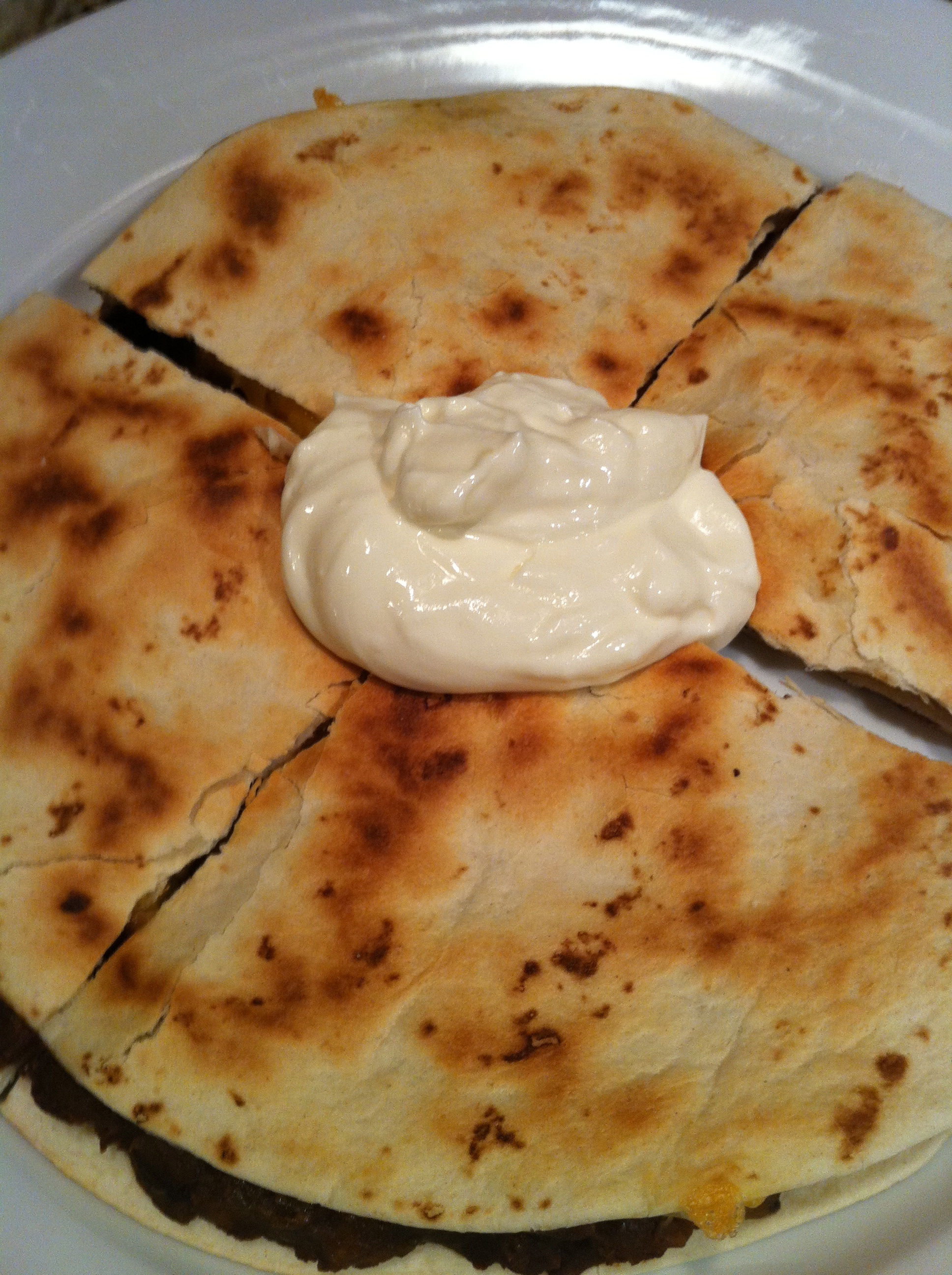 Quesadilla topped with Sour Cream (Photo Credit: Adroit Ideals)