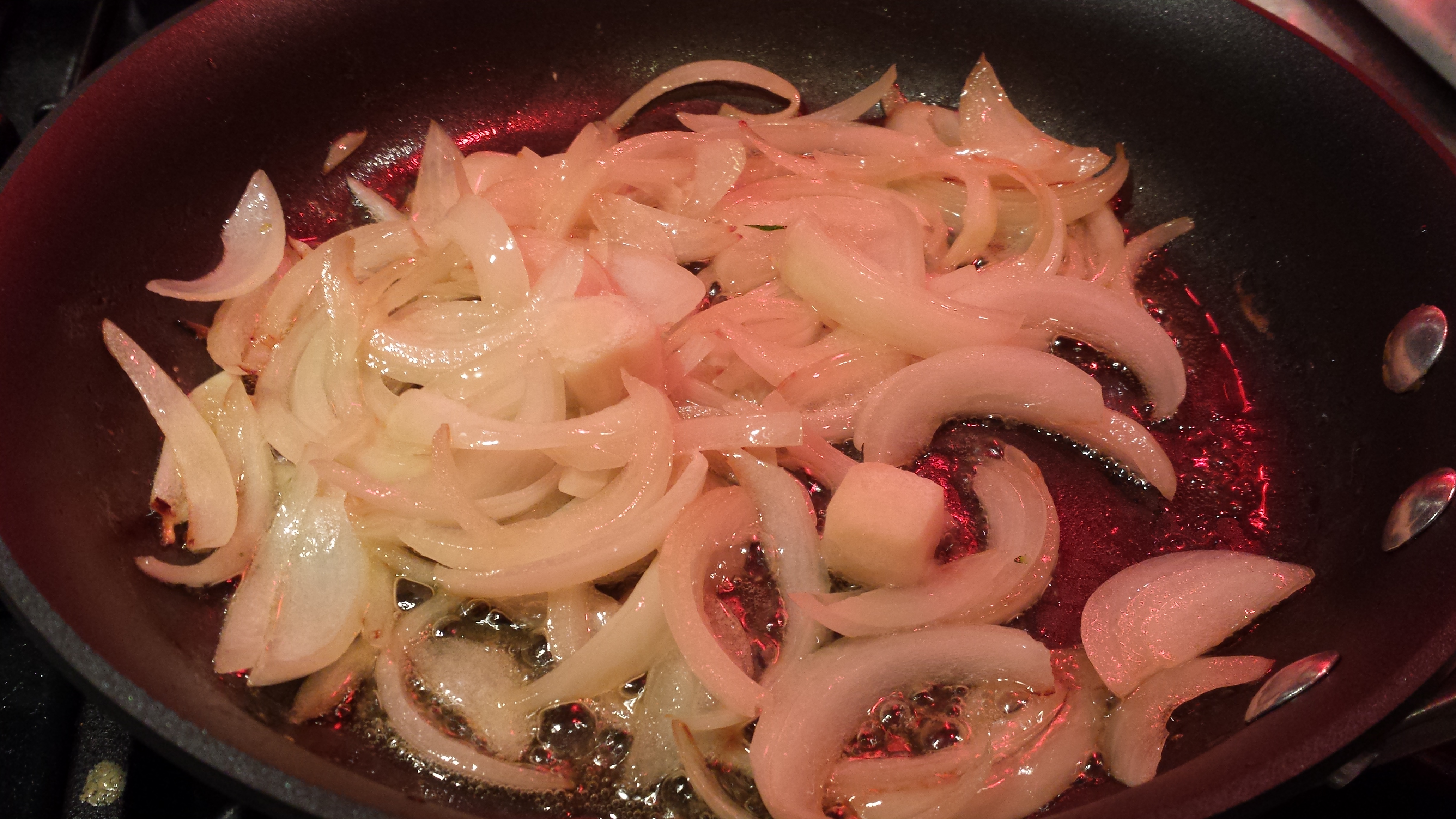 Saute the sliced onion in olive oil (Photo Credit: Adroit Ideals)
