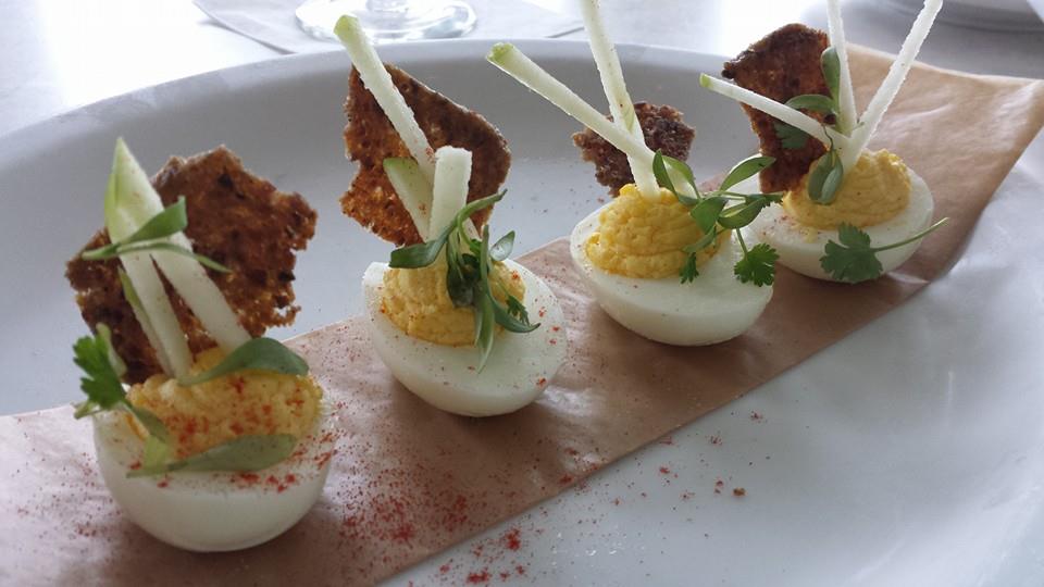 ScrappleDeviledEggsCatch54AI Scrapple Deviled Eggs at Catch 54 in Fenwick Island, Delaware (Photo Credit: Adroit Ideals)