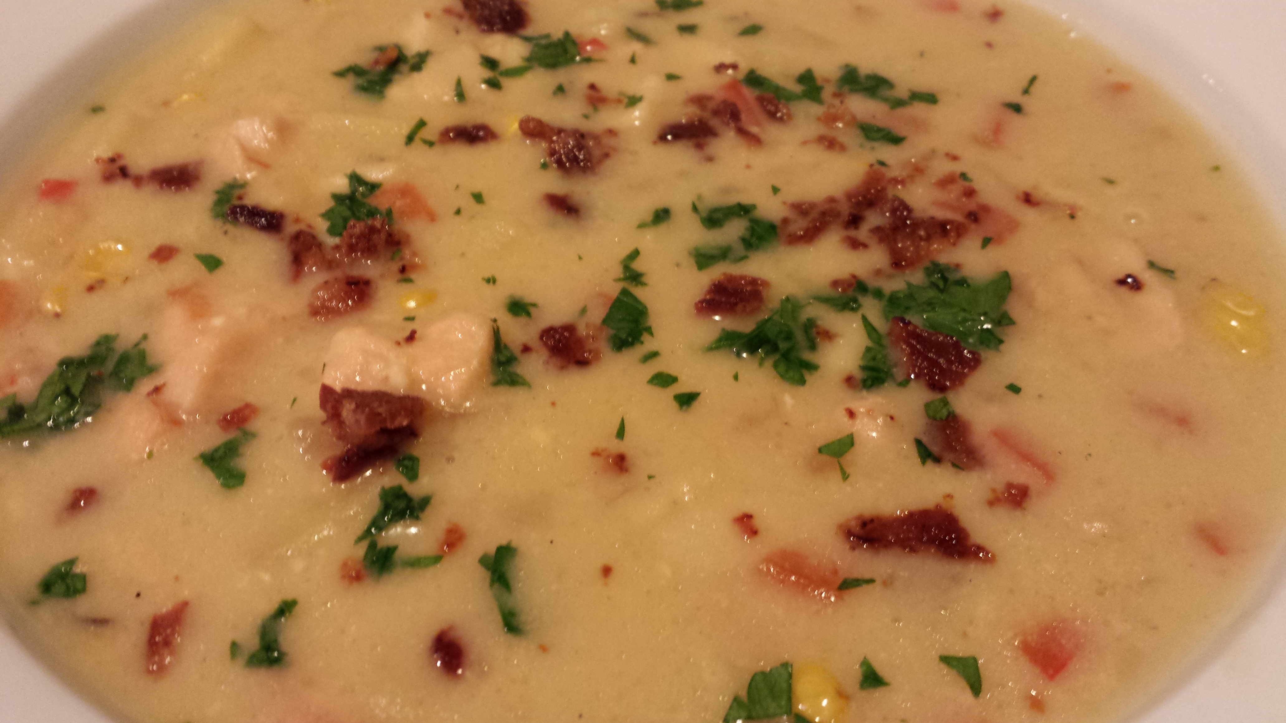 SeafoodChowder3AI Seafood Chowder topped with Crispy Bacon and Chopped Parsley (Photo Credit: Adroit Ideals)