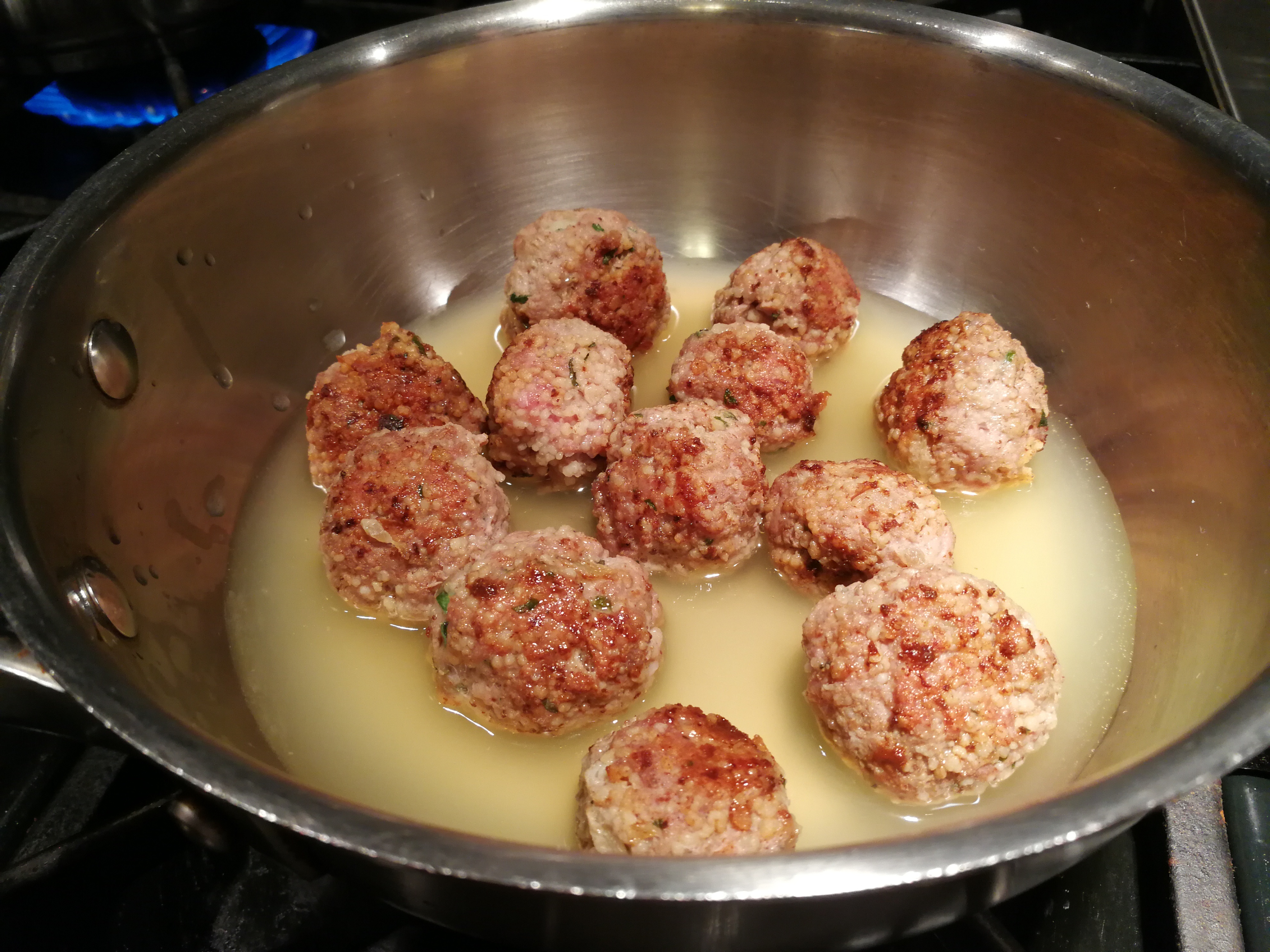 Braise the lamb meatballs in chicken stock (Photo Credit: Adroit Ideals)