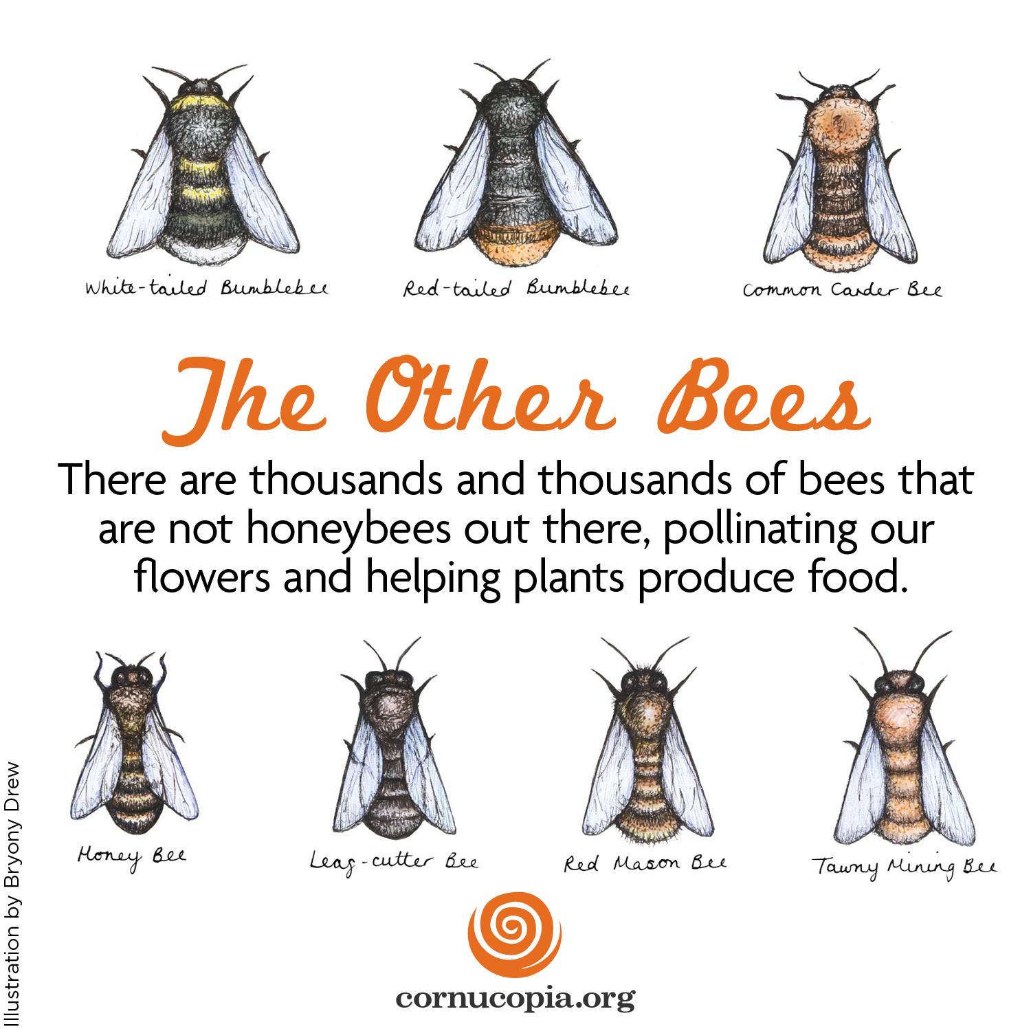 TheOtherBeesTheCornucopiaInstitute Lots of different types of bees help to pollinate our plants (Photo Credit: The Cornucopia Institute)